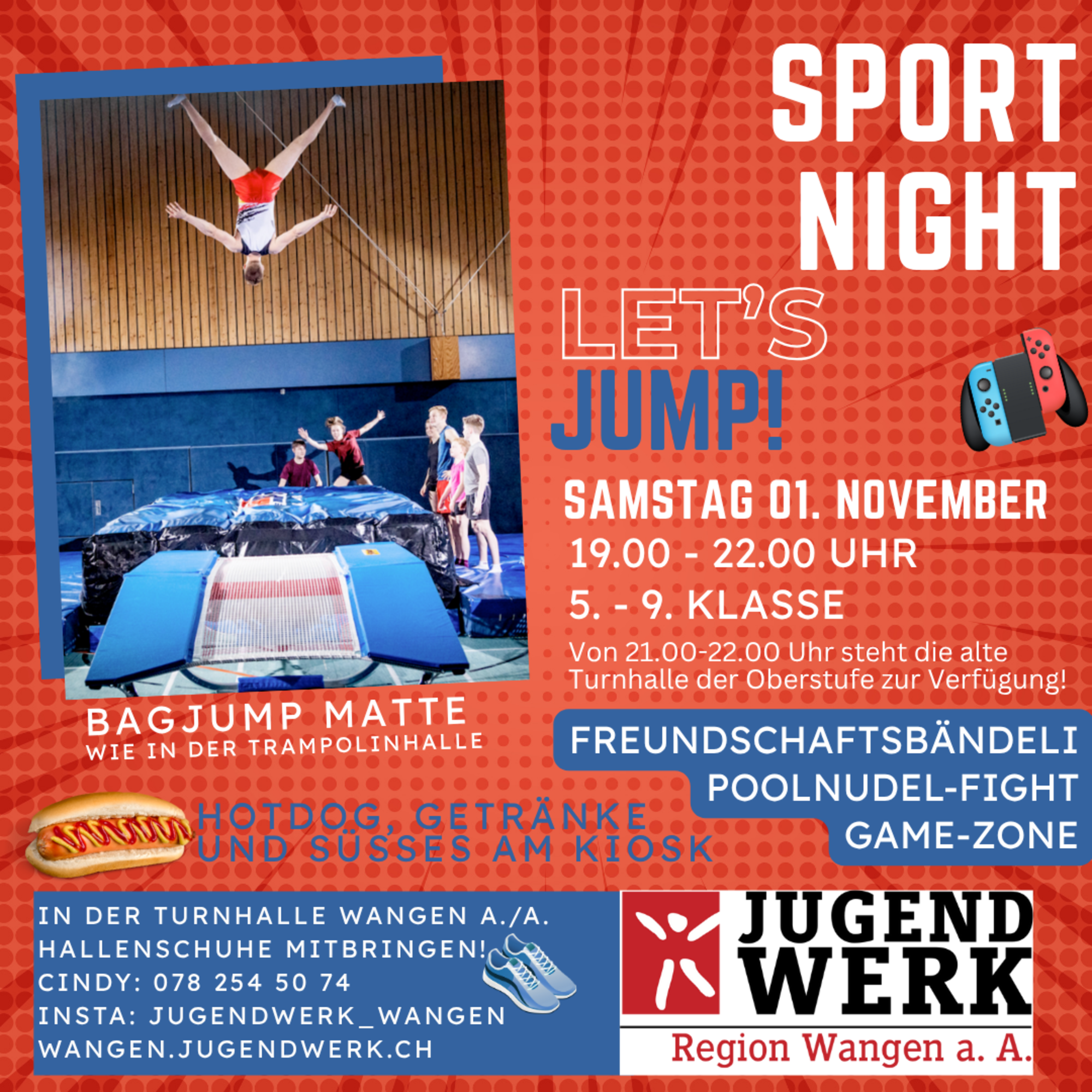 Diesen Samstag ist Sport Night für 5.-9.Klasse